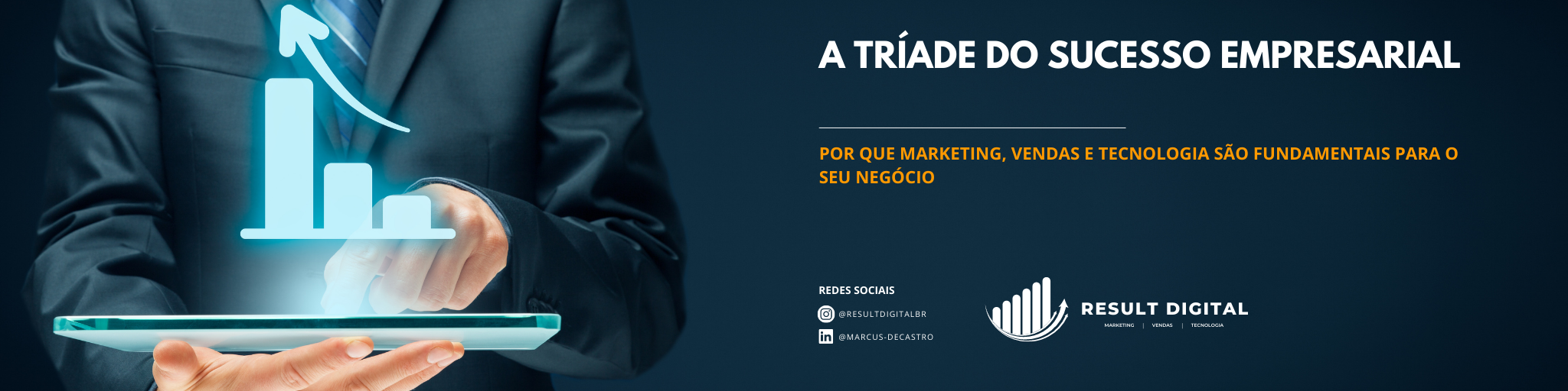 A tríade do sucesso empresarial - marketing, vendas e tecnologia - é o combustível necessário para impulsionar o seu negócio ao próximo nível. Quando essas áreas estão alinhadas e trabalhando em sinergia, você cria uma máquina de crescimento poderosa. Portanto, invista na construção de uma marca sólida, implemente estratégias de vendas eficazes e explore o potencial da tecnologia para automatizar e potencializar o seu negócio. Com o apoio da Result Digital, você terá o suporte necessário para alcançar resultados extraordinários e conquistar o sucesso que você sempre sonhou.